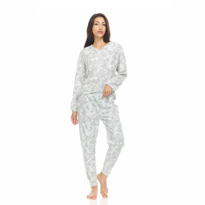 These two-piece comfy lounge sets for women feature a cozy V-neck long sleeve top and jogger pants for a coordinated look. Bearpaw women’s long sleeve top and jogger pants set are soft, light, breathable, and free-flowing. As a result, they’re great for doing activities throughout the day and for getting some sleep or lounging. Also, the long sleeve top makes it simple and fun to switch from cozy to stylish. The long sleeve top and jogger pants are made using microfleece fabric that feels great on the skin. You’ll love the feel and softness of the fabric. In addition, the pants include a stretchy elastic waistband that fits comfortably around your hips without feeling constrictive. These pj sets have been precisely designed to guarantee optimum durability. Suitable for day and night, you may wear it throughout the day at home or during bedtime. You may also wear it in the evening to join a sleepwear party. Women’s classic yet elegant nightwear outfits that are both comfortable and breathable. These cute pajama sets for women are the perfect cozy-chic present for your loved one, friends, daughters, or mom on a special occasion like an anniversary, birthday, Mother’s Day, Christmas, or Thanksgiving.