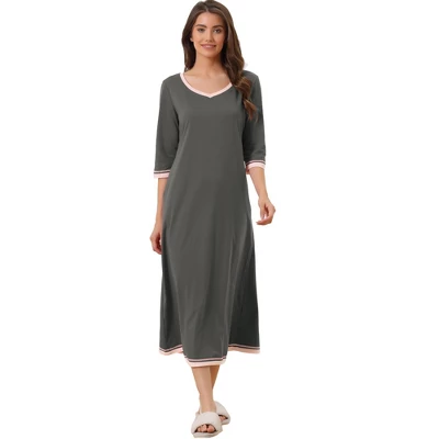 - Features v neck, color block and 3/4 sleeves, this long nightgown is made in soft fabric 65%Rayon 30%Polyester 5%Spandex, keeping all-night comfort