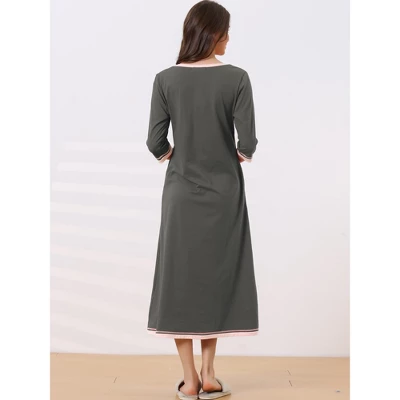 Nightshirt with v neck and 3/4 sleeves, features contrast color at the neckline, cuffs and hem. Stylish and casaul for day-to-night wear. Suitable forCozy nightgown for everyday wear at spring, summer or fall.With a elegant v neckline, good clothes cutting, this loose v neck nightshirt is everything you need for the cozy day-to-night wear, lounging, sleeping, or as a casual shirtdress for outside.This pull on closure, a-line design make it easy to take on and off, stay comfort all night and have a sweet dream.With fully length design, practical pocket, half sleeve, this nightshirt is suitable for a slumber party, sleeping, pajama party, girls’ day, Christmas, or simply as a lovely “Just because” gift.