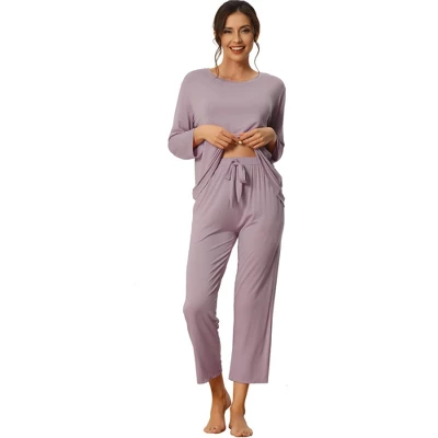 Loose Solid Modal Pajama Sets including Long Sleeve Shirt and Wide-leg Sleep PantsBasic round neck, modal fabric keeping all-night comfort, this set is made of soft fabric, 94%Rayon6%Spandex, casual and comfortable for daily loungewear.This long-sleeved pajama set is suitable for everyday wear in spring, summer, or fall and winter.With a round neck, solid color, and good clothes cutting, this basic sleepwear 2 pcs set is everything you need for the cozy day-to-night wear, lounging, and sleeping.Pull-on closure, wide-led straight sleep pants, and loose fit make it easy to take on and off, stay comfortable all night, and have a sweet dream.Suitable for nightwear, sleeping, daily loungewear, or simply as a lovely “Just because” gift for ladies.
