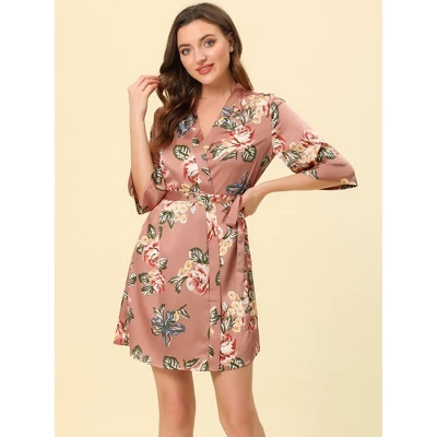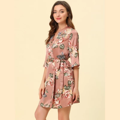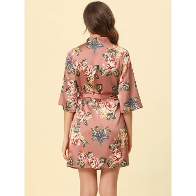 Cheibear Womens Satin Robes Pajama Bridal Party Tie Waist Mini Bathrobe