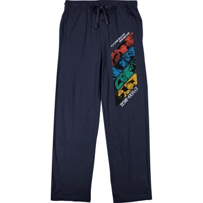 - NAVY PANTS: The navy color of these pants will match with most shirts and jackets, so you can look stylish while dressed for comfort. The bright colors of the graphic design stand out against the navy background.