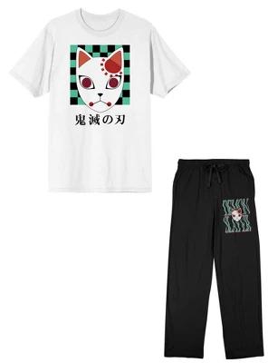 - CUSTOM DESIGN: Images of Tanjiro’s warding mask and kanji decorate the graphic tee in this sleep set while the mask and series title appear on the sleep pajama pants. Demon Slayer fans will love these fun designs.