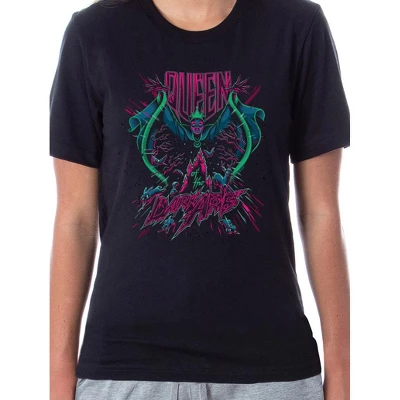 - DETAILED THEME – This Disney Villains pajama set-top features The Evil Queen character from the movie Snow White and the Seven Dwarfs, the words “Queen Of The Dark Arts” around her. The pajama pants feature the poison apple from the movie and the words “Just One Bite” around it. The set is perfect for curling up in and enjoying all your favorite Disney movies!