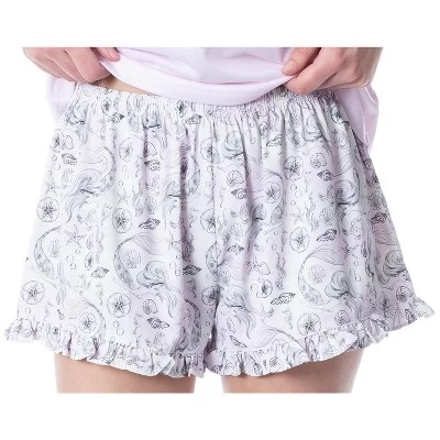 - CLASSIC CHARACTER DESIGN – This pajama set-top features a sketched look of Princess Ariel surrounded by shells with a kingdom behind her. The shorts feature that same sketched look of Ariel, along with her fishy friend Flounder, and more seashells and fish. They’re perfect for curling up in and watching all your favorite Disney princess movies!