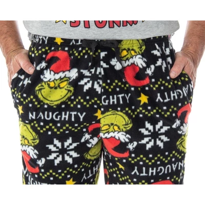 - SUPER-SOFT FLEECE PANTS AND COZY SOCKS – The pants feature an allover design of The Grinch and the script Naughty. The socks are a cozy polyester/spandex fabric, that is thick and comfy with a Grinch face design. Makes a great gift for the Disney fanatic on Christmas, Valentines Day, Father’s Day, Birthday, Anniversary, or any other holiday or event that requires a gift.