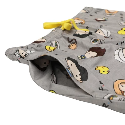 - CUSTOM DESIGN: Chibi images of Friends characters along with the pivot couch and the Central Perk logo decorate the graphic tee in this sleep set while the stretch pants feature chibi images of the roommates. Friends fans will love this fun design.