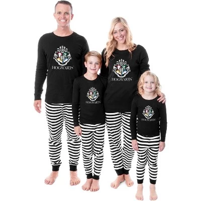 Are you ready to head to Hogwarts from Platform 9 3/4? Harry Potter has become a worldwide phenomenon after the incredible books from J.K Rowling and has inspired eight beautiful films! Hogwarts Castle of Witchcraft and Wizardry is the only place to go for the young and magically inclined! The Sorting Hat will separate you into 1 of 4 houses: Gryffindor, Ravenclaw, Hufflepuff, or Slytherin, which will then determine your fate in the world of magic. These Harry Potter Wizarding World pajama family pajamas feature the phrase “Mischief Managed,” along with “I Solemnly Swear I’m Up To No Good”. The pants are a fun striped design. The whole pajama set is 100% cotton.