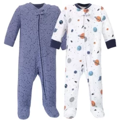 Hudson Baby Infant Boy Premium Quilted Zipper Sleep And Play 2pk, Space