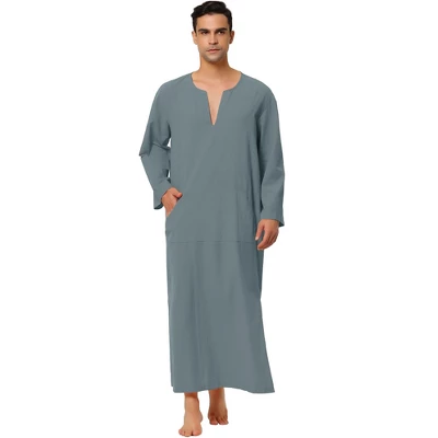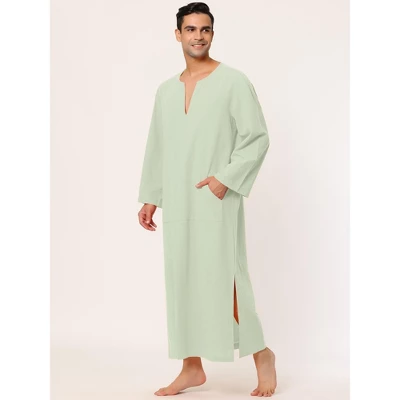 There is a pocket on the front for storing small items, which is convenient and practical. Made of soft fabric, it will be comfortable to wear, and you can enjoy leisure and sleep time at home. The long-sleeved gown is designed with a V-neck and pullover style for easy wearing and taking off. This nightshirt is suitable for beaches, holidays, festivals, home wear, and daily casual wear. Machine Wash Cold Inside Out. Model Body Size: Height: 6’1″, Chest: 38 2/8 inches, Waist: 30 6/8 inches, Hip: 42 1/8 inches, Weight: 175 lbs.