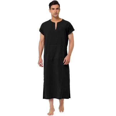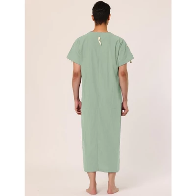 - Solid color, v-neck, pocket, side split, short sleeves, cotton long gown