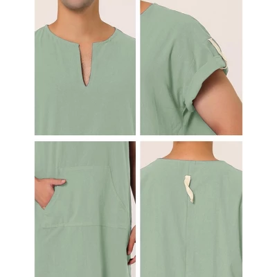 There is a pocket on the front for storing small items, which is convenient and practical. Made of soft fabric, it will be comfortable to wear, and you can enjoy leisure and sleep time at home. The long gown is designed with a split neckline and pullover for easy wearing and taking off. This nightshirt is suitable for beaches, pajama parties, home wear, and daily casual wear.