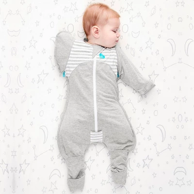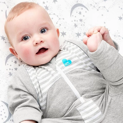 The LOVE TO DREAM™ SWADDLE UP™ TRANSITION SUIT is a gentle transition solution to preserve your sleep routine – perfect for babies who are ready to transition and love the secure feeling of being swaddled. The snug fit of the upper chest, the zip-off wings and zip-on SELF-SOOTHING™ SLEEVES (with fold over cuffs) allow your baby to slowly adjust to ‘arms-free’ sleep.