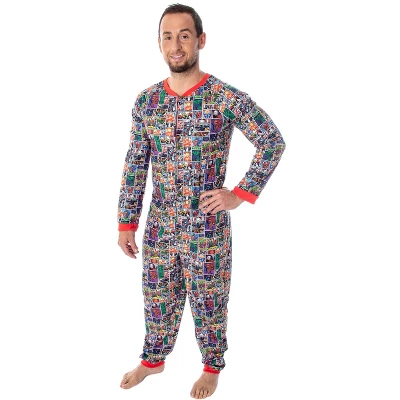 - INCREDIBLE ALLOVER GRAPHIC DESIGN – This Marvel superhero allover one-piece pajama union suit takes multi-character print to the next level! It has a grid-style print that has characters like, Captain America, Iron Man, Spiderman, Spider-Man 2099, Vision, Thor, The Hulk, Ant-Man, Daredevil, Doctor Strange, Rocket Racoon, Black Panther, Ghost Rider and many more! Some print is from classic comic books and other designs our even done from classic video games!