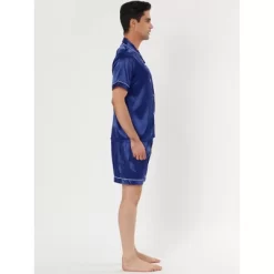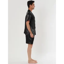 Lars Amadeus Men’s Satin Pajama Set Summer Short Sleeve Night Wear Sleepwears Sleep Lounge Sets