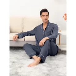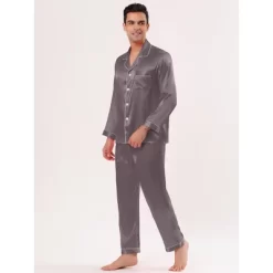 Lars Amadeus Men’s Satin Sleeping Long Sleeves Shirt Pants Pajama Set