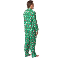 Peanuts Mens’ Christmas Snoopy Charlie Brown Button Sleep Pajama Set Green