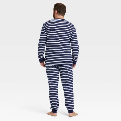 Upgrade your nightwear selection with this 2-Piece Navy Striped Pajama Set from EV Holiday. This men’s sleepwear set includes one long-sleeve top and a pair of full-length pajama bottoms for a cozy ensemble. Featuring navy and white stripes throughout, it adds a nautical touch to your sleep wardrobe. Perfect for sleep or relaxing around the house, it sports a 100% cotton construction to keep you cool in breathable comfort. The coordinating sleep pants come with a drawstring waist to let you find the right fit every time, and are styled with banded cuffs to give you a more fitted finish. Wear together as a set or mix with other sleepwear items for a variety of sleep looks.