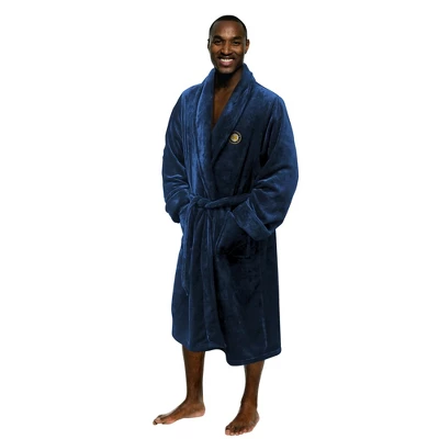Show your team spirit while relaxing at home in our Officially Licensed NCAA Silk Touch Men’s Bath/Lounge Robe from the Northwest Group. Made with ultra soft Silk Touch 100% Polyester, and features embroidered team logo on the left chest area, two front patch pockets, a Silk Touch tie belt, and two belt loops on both the left and right sidesSize 26in x 47in, (L/XL)Embroidered Team logo on left chest areaMaterial: 100% PolyesterOfficially licensed by the NCAATie belt and two belt loops on both the left and right sides for added adjustabilityMachine wash cold separately using delicate cycle and mild detergent. Do not bleach. Machine dry separately on gentle cycle. Remove promptly. Do not iron