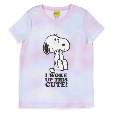 - CLASSIC CHARACTER DESIGN – The Peanuts pajama set-top features a tie-dye colored top with the words “I Woke Up This Cute” along with the beloved Beagle dog Snoopy! The shorts feature an all-over print of Snoopy as well getting ready for bed. They’re perfect for everyday wear!