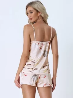 Cheibear Womens Pajama Dress Spaghetti Strap Nightdress Cami Lounge Satin Nightgowns
