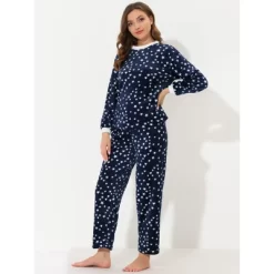 Cheibear Womens Flannel Pajama Sets Winter Cute Printed Long Sleeve Nightwear Lounge Sleepwear