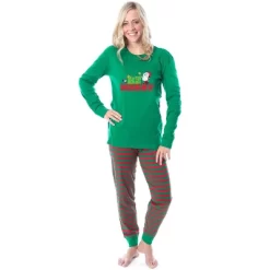 Peanuts Mens’ Christmas Holiday Season Sing Along Sleep Pajama Set Green