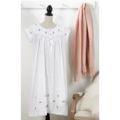 Saro Lifestyle Pure Cotton Full-Length Sleeveless Embroidered Nightgown