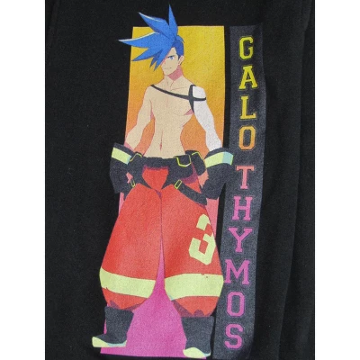 - GRAPHIC DESIGN: Pictures of Galo Thymos and Aina Adrebit with yellow and purple backgrounds decorate the left leg of these sweatpants. Fans of the movie will love to support their favorite anime characters with this fun design.