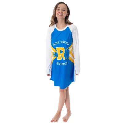 - HIGH-QUALITY IN-FABRIC DESIGN – The front of this women’s nightgown features a full front, in-fabric River Vixen cheerleader costume design done in vivid blue and yellow colors from the popular television show