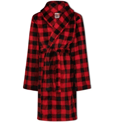Perfect for an extra layer of comfort, he’ll love snuggling up in this super-soft and cozy robe made from 100% plush fleece. Featuring a shawl collar and an easy tie waist belt, this bold red plaid robe also comes with a matching pair of snug slippers, with an anti-slip sole design, to keep his toes warm too.