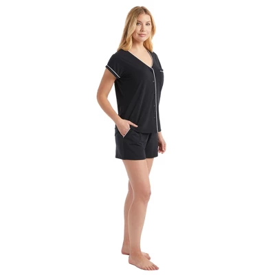 - Softies Women’s Cap Sleeve PJ Shorts Set with Contrast Piping is fun and playful