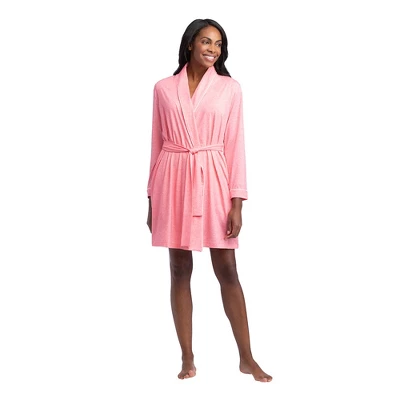 Start and end every day wrapped in luxury. The Softies 36″ Short Robe is a comfy yet lightweight front-wrap robe that makes an irresistible addition to your favorite pajamas. You’ll fall in love with the stylish contrast-piping trim details that add finesse to every curve of this gorgeous robe, and help you look and feel your best. Designed with Dri-release® fabric, the Softies 36″ Short Robe will keep you comfortable and cool. Whether you’re on a vacation, relaxing by the fire, doing your daily skincare routine, or enjoying quality time indoors with your family, wear this essential piece for a level of softness and comfort you can’t resist.