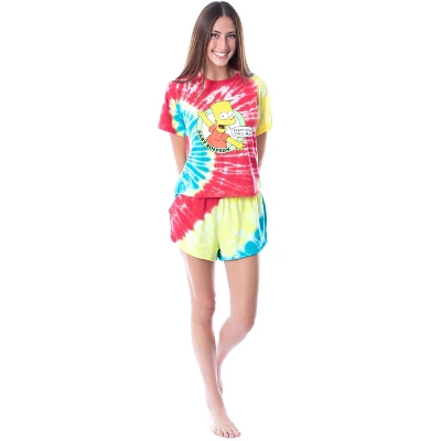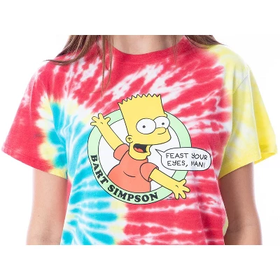 - HIGH-QUALITY PRINTED DESIGN ON SHIRT AND SHORTS – The top features a large front printed design of Bart Simpson with text that reads “Feast Your Eyes, Man!” The shorts feature The Simpsons show logo print on the bottom left. A fun, bright tie-dye fabric is used with colors like red, yellow, and teal blue