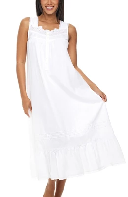 This soft 100 percent cotton poplin nightgown for women from Alexander Del Rossa is comfortable, durable, and classy. Made from a premium 100% cotton fabric, this women’s vintage looking nightgown is breathable and easy on the skin. Designed with you in mind, this victorian nightgown is perfect for lounging around the house – even when guests are present. Lace trim shoulder straps, pintucks on yoke, double layered back yoke, slightly straight A-line, gathered front packet with 8 pearl shell buttons, gathered back, wide hem with gathered rume. Romantic.