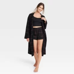 Women’s Holiday Plaid Seamless Fleece Lined Leggings – Wondershop™ Black/Red