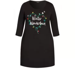 Women’s Plus Size Heart Print Maxi Sleep Dress – Black | AVENUE