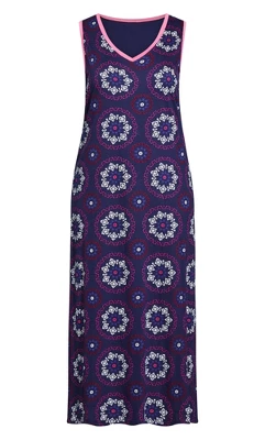 Women’s Plus Size Side Split Sleeveless Print Maxi Sleep Dress – Violet | AVENUE