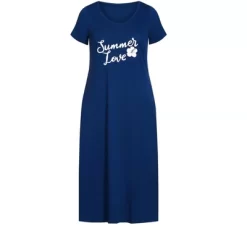 Women’s Plus Size Summer Love Short Sleeve Sleep Maxi Dress – Deep Blue | AVENUE