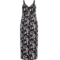 Women’s Plus Size Lace Trim Mono Floral Maxi Sleep Dress – Black | AVENUE