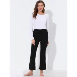 Cheibear Womens Pajama Pants Sleepwear Jogging Bottoms Casual Trousers Wide Leg Lounge Pants