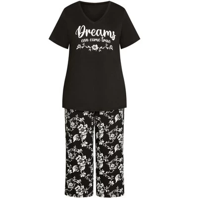 Leave it to the Dreams Sleep Set to give you the soundest slumber. The tee features a fun, graphic print finished with a V-neckline, while the trousers offer soft easy wear with its elasticated drawstring waistband. Plus, you’ll love the inclusion of a chic reversible eye mask.Everyday style made easy, Avenue is your one-stop-shop for plus size fashion. Inspired by a comfort-meets-style approach, this effortless brand marries relaxed silhouettes with dynamic prints and colors. From casual daywear to staple denim, Avenue has simplified your everyday dressing. Take your day-to-day look to new heights with comfortable basics or eye-catchingly printed pieces, all designed to keep you comfortable while flaunting your curves to perfection. Available in sizes 14 – 40.