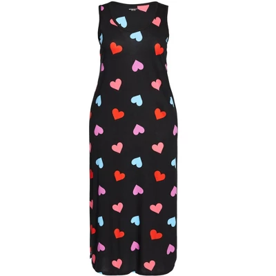 All you need is love in this colorfully printed sleep maxi dress! The sleeveless cut and relaxed shape keep will you comfortable, no matter the conditions.Everyday style made easy, Avenue is your one-stop-shop for plus size fashion. Inspired by a comfort-meets-style approach, this effortless brand marries relaxed silhouettes with dynamic prints and colors. From casual daywear to staple denim, Avenue has simplified your everyday dressing. Take your day-to-day look to new heights with comfortable basics or eye-catchingly printed pieces, all designed to keep you comfortable while flaunting your curves to perfection. Available in sizes 14 – 40.